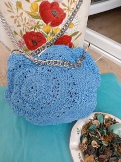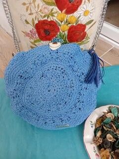 Sac circulaire Bleu clair en coton, fait main au crochet, entièrement artisanal.